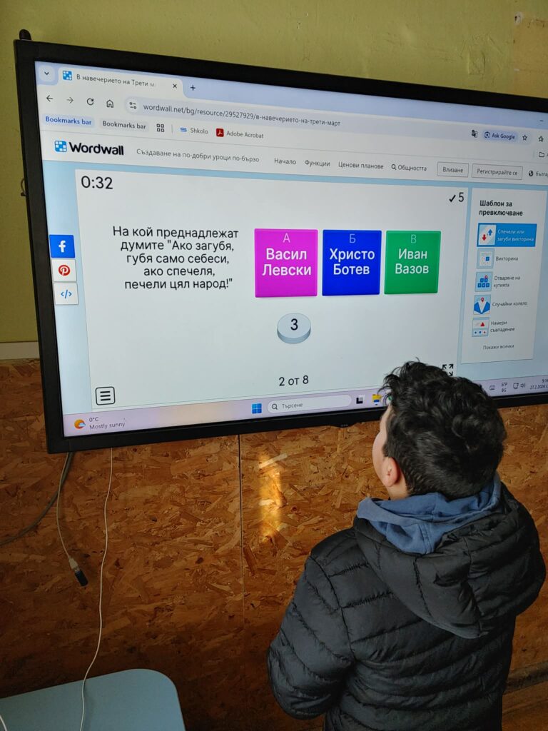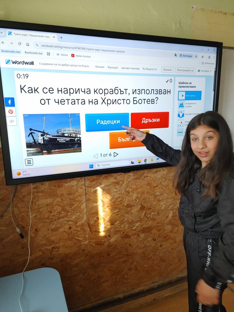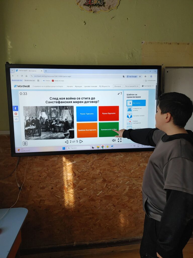 В паралелката 5. – 6. клас се проведе викторина, чрез която учениците си припомниха важни моменти и символи от Руско-Турската война, а седмокласниците гледаха филм и отговаряха на въпроси от Българското Възраждане.